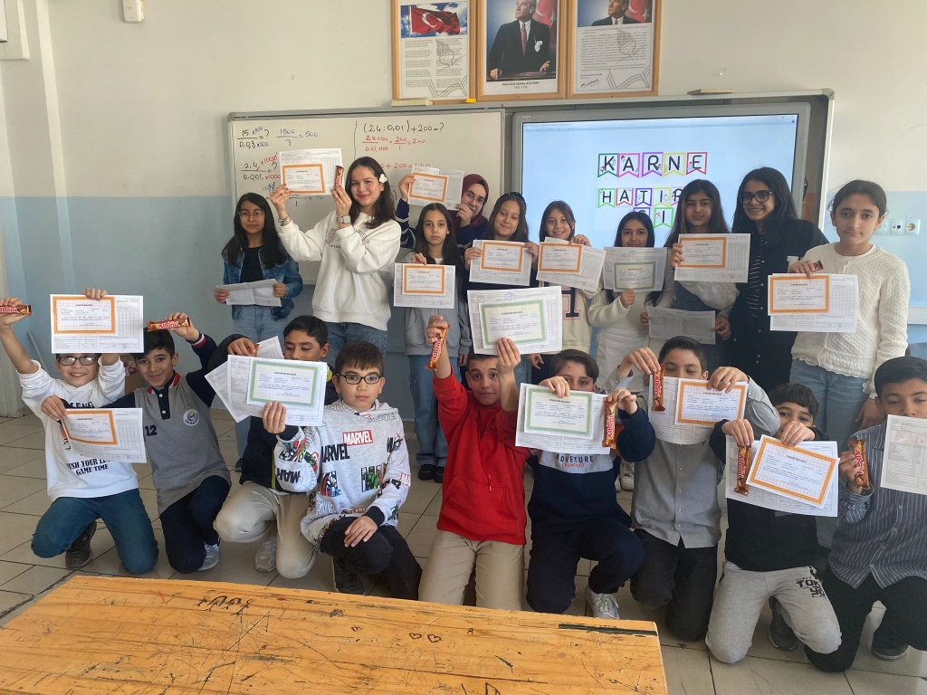 Okulumuzda birinci dönem sona erdi büyük bir heyecanla karne dağıtımını gerçekleştirdik.Tatil boyunca dinlenip yeni döneme enerjik başlamayı umut ediyoruz.Öğrencilerimizi bir sonraki dönem daha büyük başarılar ve güzel anılarla görmek dileğiyle...